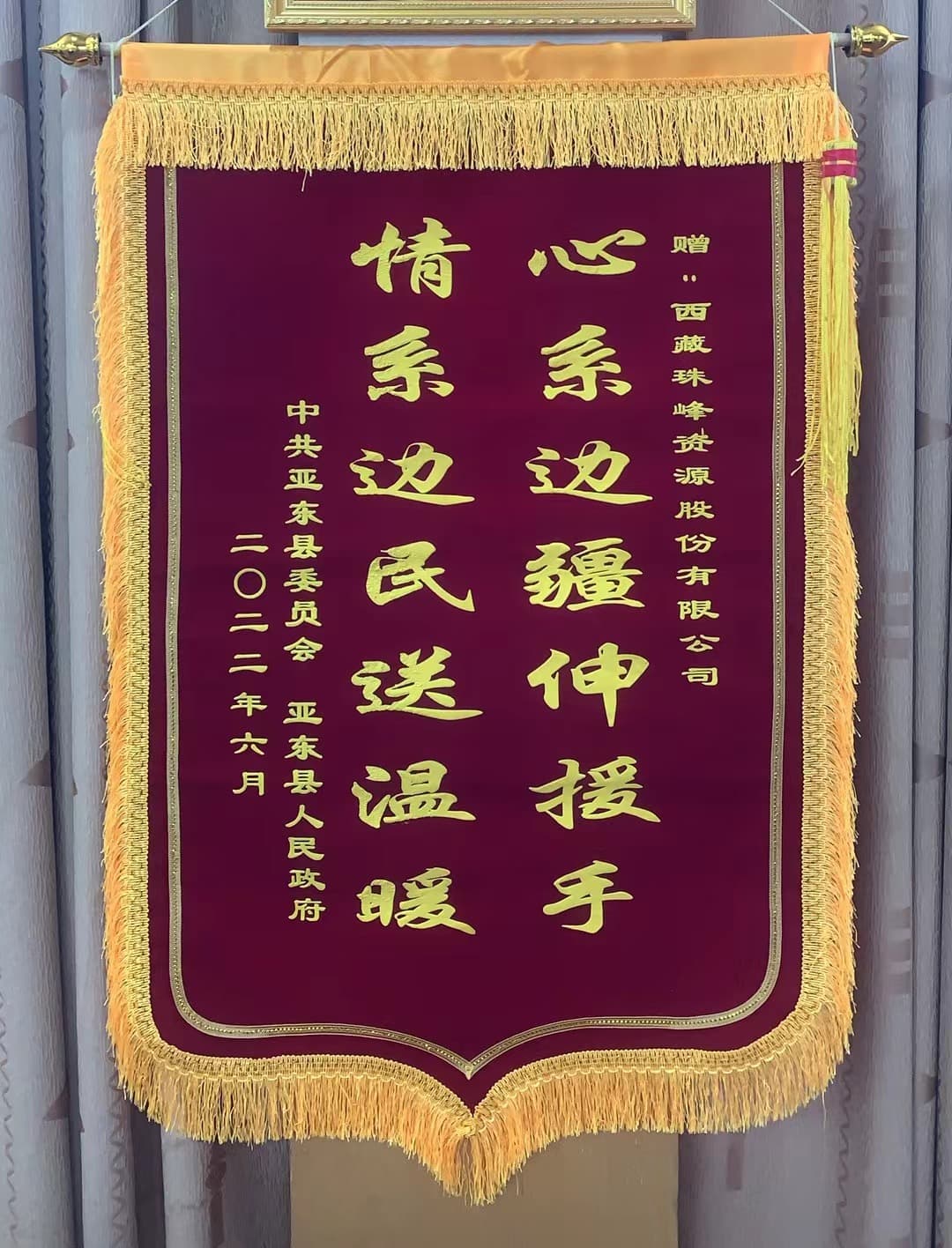 西藏亞東縣贈送錦旗